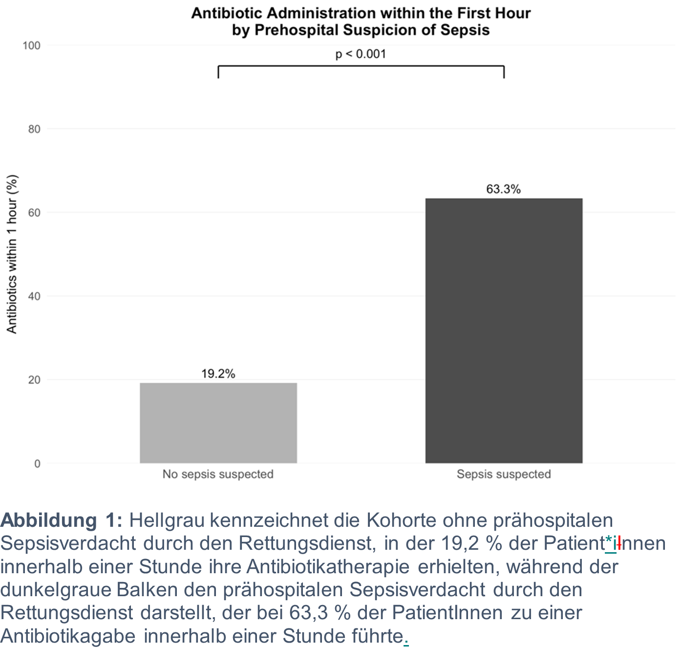 Schlussfolgerung Eine prähospitale Sepsiserkennung durch den Rettungsdienst war stark mit einer früheren Antibiotikagabe assoziiert. Diese Ergebnisse unterstreichen die Bedeutung strukturierter Sepsisscreenings im prähospitalen Setting.